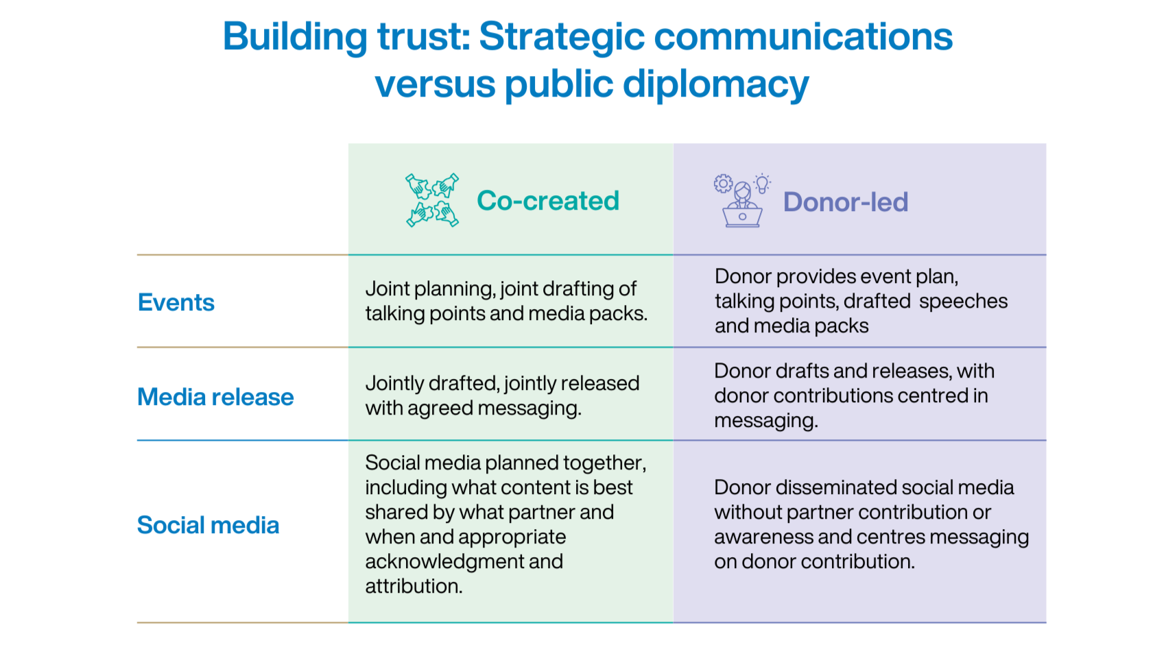 Reinforcing credibility: High-quality, timely and partner-led public storytelling shows that a donor is accountable, values-driven and aligned with local priorities.